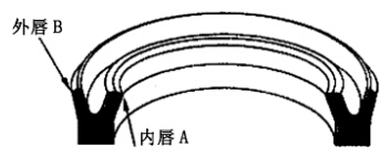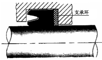 除此之外,在一些壓力較高的密封場(chǎng)合,即使擠出間隙的選擇較為合理,但也較難保證根部材料不受損傷。為使密封圈能夠承受較大工作壓力,可給其根部增加支撐環(huán),支撐環(huán)一般選擇摩擦系數(shù)較小的聚四氟乙烯或聚酰胺,見(jiàn)圖8。