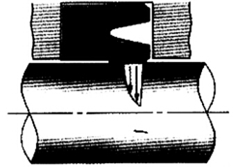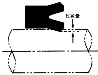 Y型密封圈安裝之后,其唇口密封部位與接觸界面有一定的過(guò)盈量,產(chǎn)生初始密封力,達(dá)到密封效果(見(jiàn)圖4)。初始過(guò)盈量過(guò)大將導(dǎo)致密封唇口與活動(dòng)接觸面間的摩擦力增大,唇口部位易磨損,密封圈使用壽命縮短;初始過(guò)盈量過(guò)小,密封唇口與活動(dòng)接觸面間的預(yù)緊力小,密封效果不理想,甚至不能滿足高壓密封。工作壓力較小時(shí),可以認(rèn)為產(chǎn)品是在無(wú)壓狀態(tài)下使用,此時(shí)的密封力僅為密封唇口與活動(dòng)接觸面的接觸預(yù)緊力;壓力較高時(shí),不僅要考慮密封唇口的過(guò)盈尺寸,而且還要考慮其相應(yīng)增大的厚度尺寸,以便提高密封唇口的抗彎曲能力。Y型密封圈的密封唇口可采用模壓成型或機(jī)械切割方式成型。唇口尺寸較小或者尺寸特別大時(shí),一般采用模壓成型。采用切削加工方式切削唇口時(shí),需用專門胎具,且多一道工序,生產(chǎn)周期較長(zhǎng)。